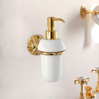 El juego entre volutas florales decora la base de esta serie de complementos de gusto típicamente barroco. Los acabados adquieren connotaciones antiguas gracias al juego de relieves en la base. Accesorios exclusivos para baños valiosos. Pasado y presente se mezclan en el estilo inconfundible de estos productos.