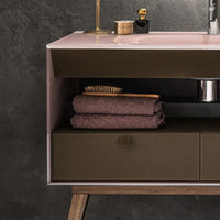 Es un mueble ideal para espacios amplios; diseñado en madera y cristal rosado de la mas alta calidad de origen italiano.