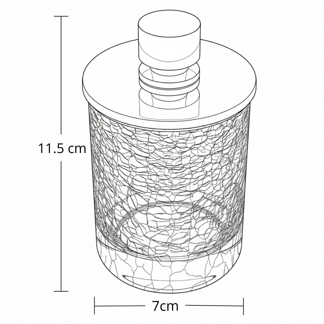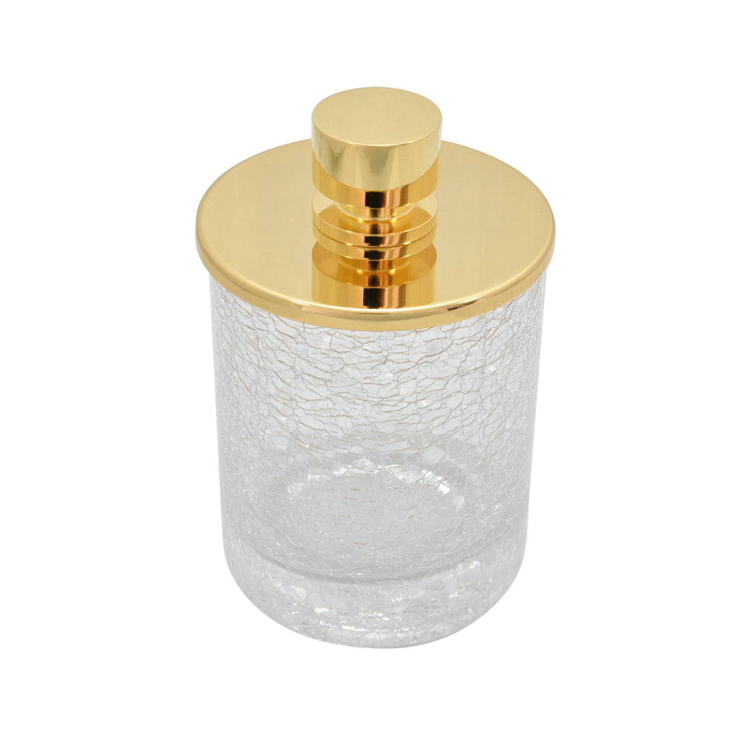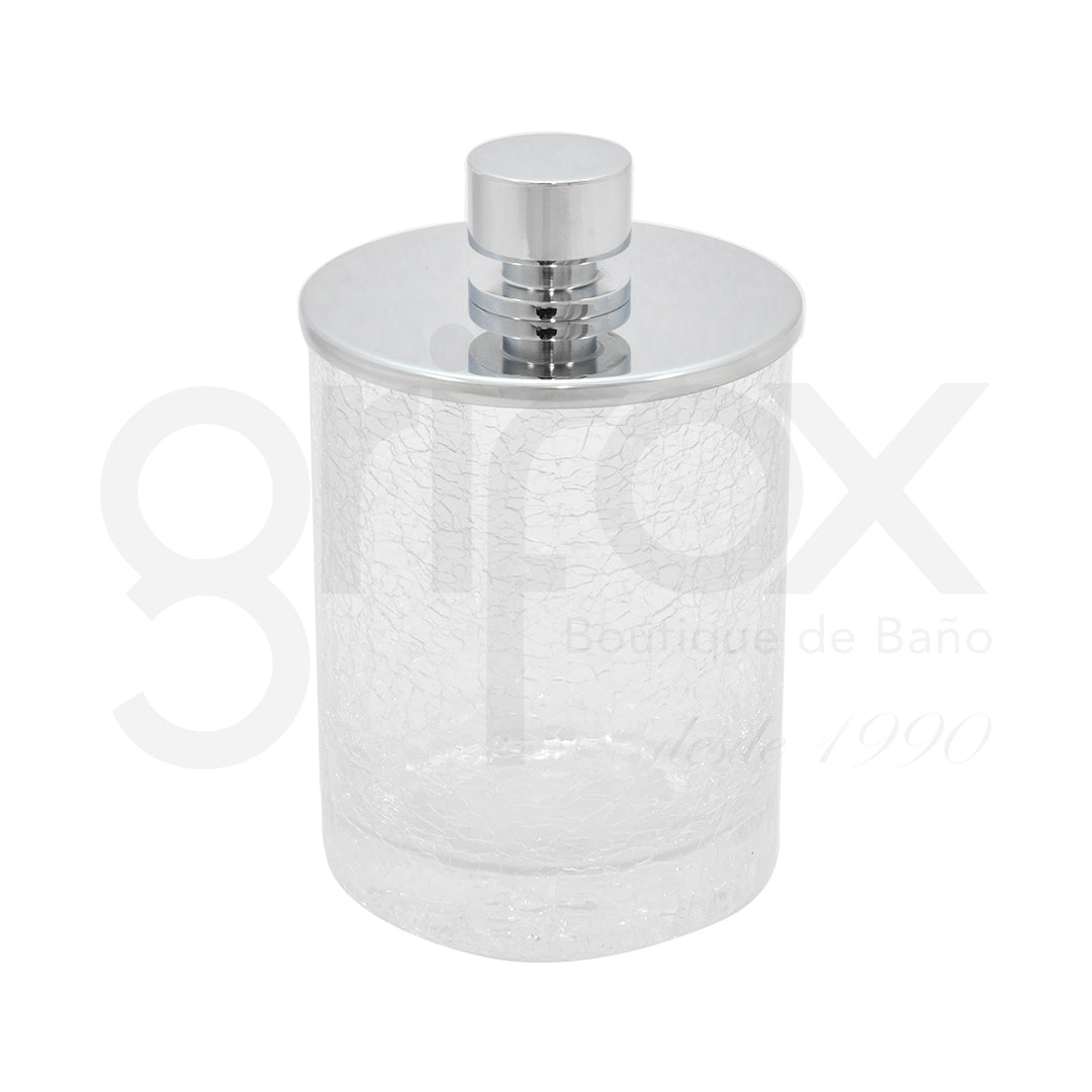 Porta algodones diseñado para armonizar su ambiente de baño, dándole un toque exclusivo, es de nuestra colección cristal de diseño, disponible en stock.