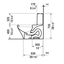 Inodoro de una piezaAsiento de cierre suave con bisagras de acero inoxidable.Válvula de pistón de doble descarga 1.32 / 0.92 GPFDistancia del eje vertical al centro del diametro del desague: 30.5 cmDoble descarga en la parte superior de la tapa del tanque.Material: porcelanaAcabado / Color: blanco brillanteDimensiones: Ancho: 38,5 cm Alto: 72.5 cm P. 72 cmPeso: 69 kilosFácil instalación: si